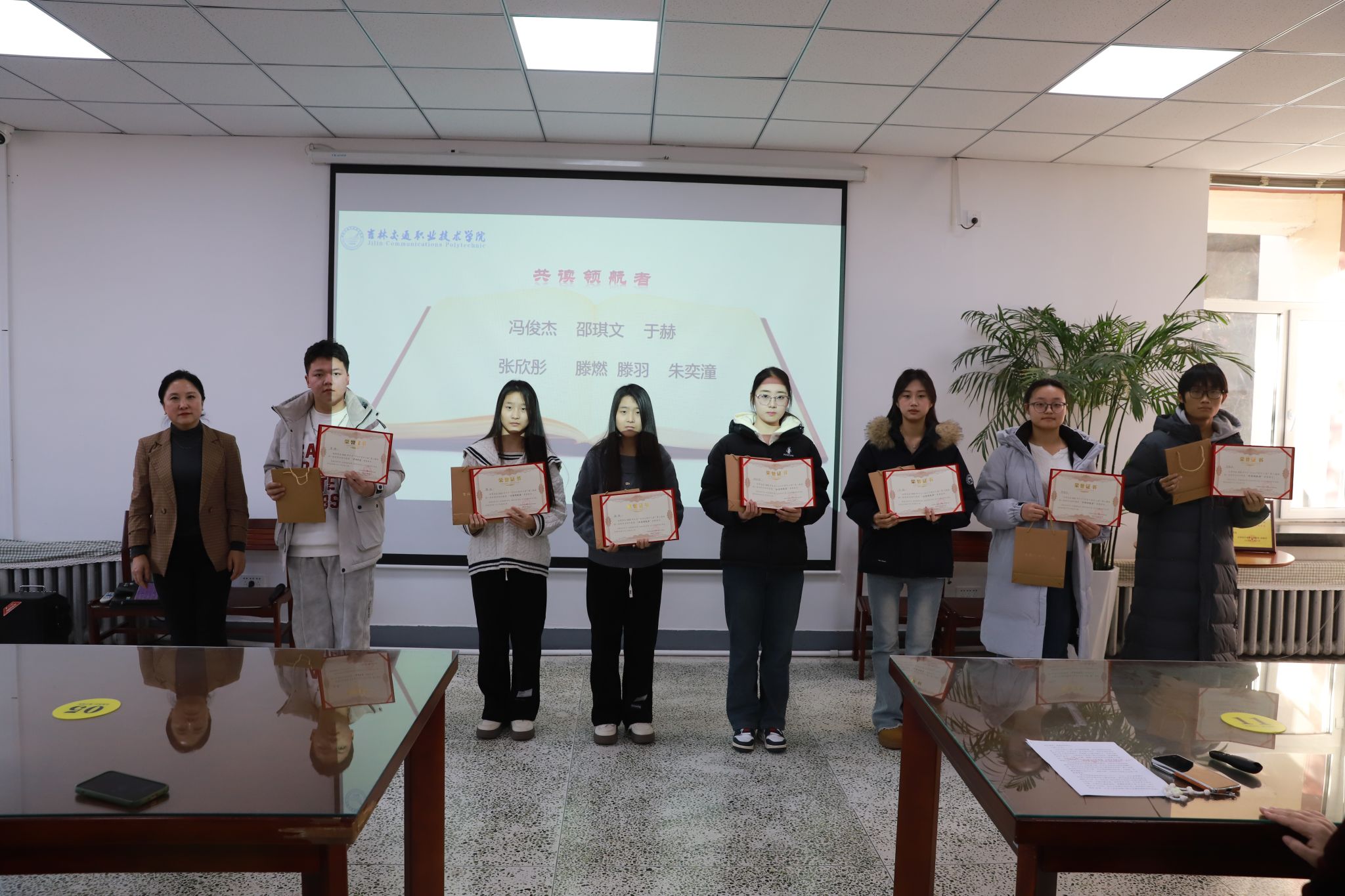 阳光和煦,书香满溢。12月3日“百社千馆万人读”共读一本好书活动颁奖活动在图书馆举行。图书馆馆长宫秀萍、副馆长袁源,轨道交通学院党总支副书记隋吉喆,交通信息学院学办主任张文婷等参加此次活动并为获奖学生颁奖。